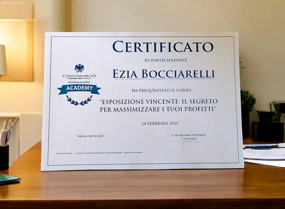 Oggi la guida della gioielleria è passata a Ezia, che — dopo la laurea con lode e una tesi dedicata al passaggio generazionale nelle imprese orafe — ha scelto di continuare il percorso iniziato quasi un secolo fa.