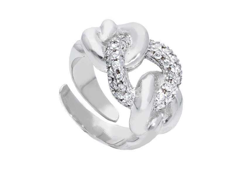 925‰ e zirconi (zirconia cubic) bianchi. Il gambo aperto garantisce un perfetta indossabilità. Misura 17 (nella pagina "negozio" trovi la tabella con le misure).