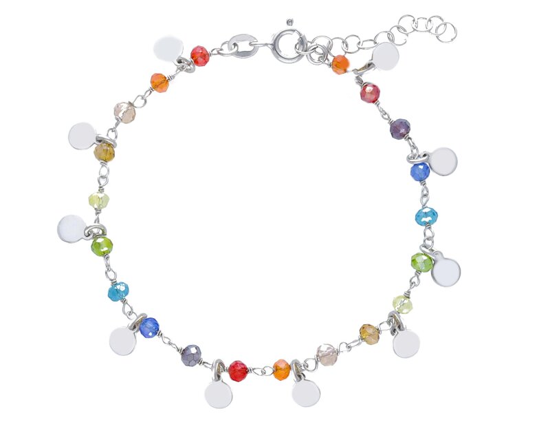 925‰ rosato con charms tondi piatti e cristalli multicolor.