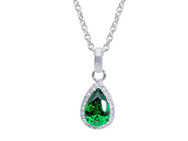 925‰ con centrale in cristallo artificiale verde a forma di goccia e contorno in zirconia cubica.